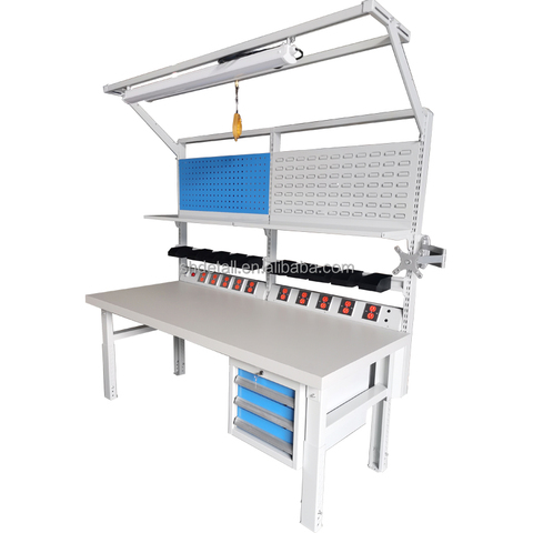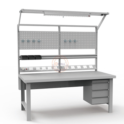 Detall قابل للتعديل مصنع المعادن طاولات العمل مع pegboard وأداة درج